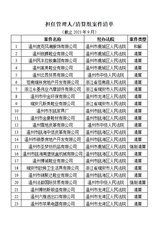 浙江省人民法院破產(chǎn)案件管理人
